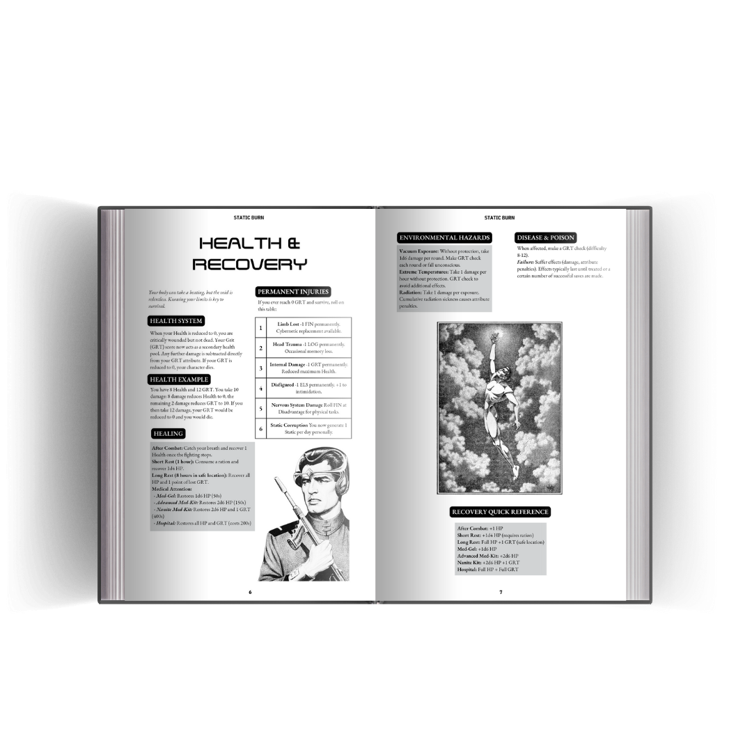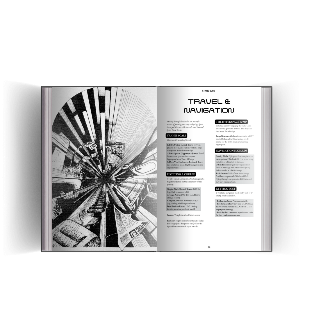 · Rules for travel, survival, crew management, and the ever-looming threat of your ship's Static Core overloading.